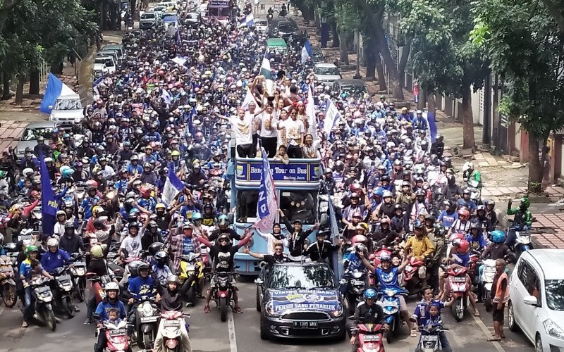 Kemudian para pemain Persib Putri menggunakan bus Bandros mengelilingi Kota Bandung dengan kawalan para bobotoh yang mengekor menggunakan sepeda motor.